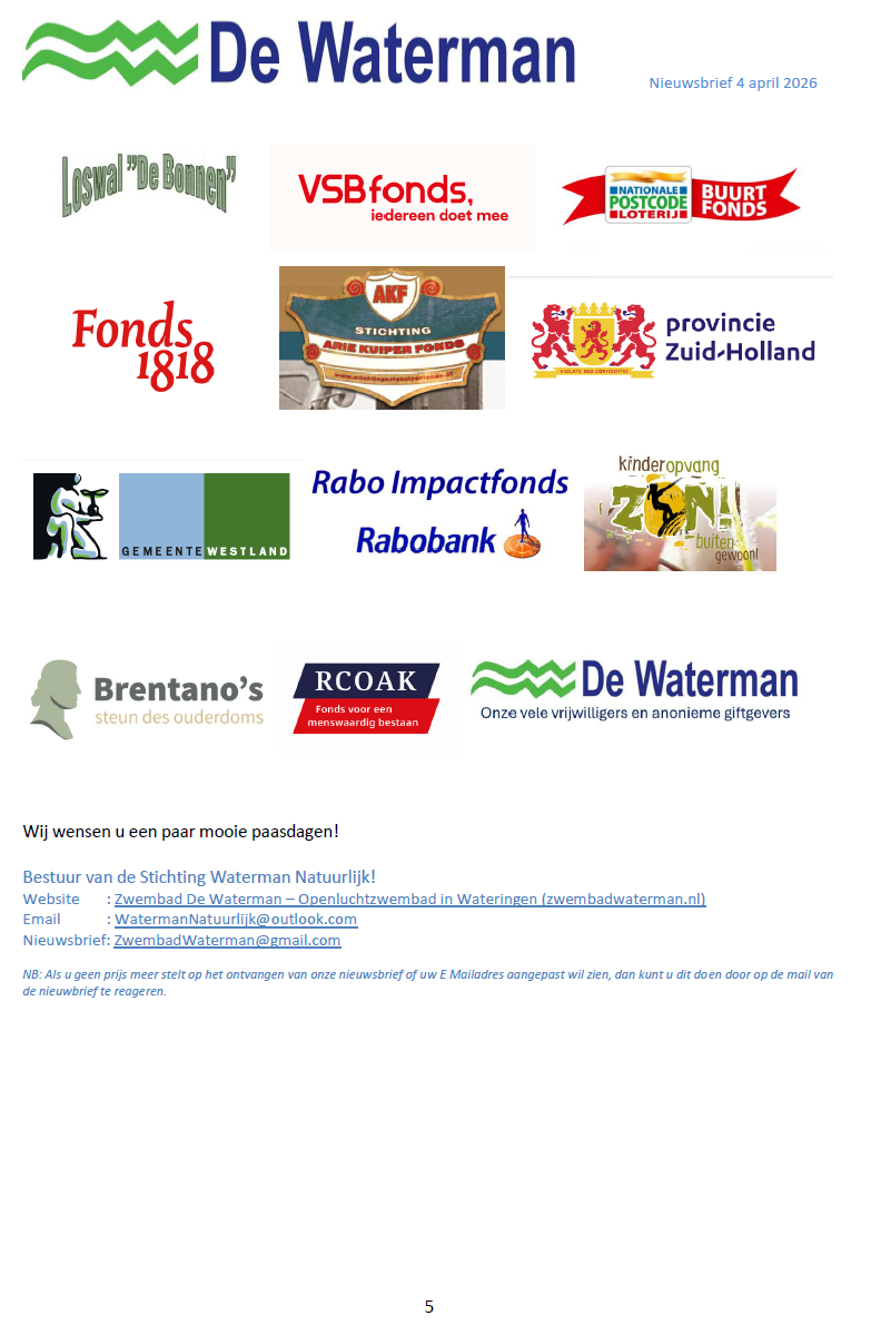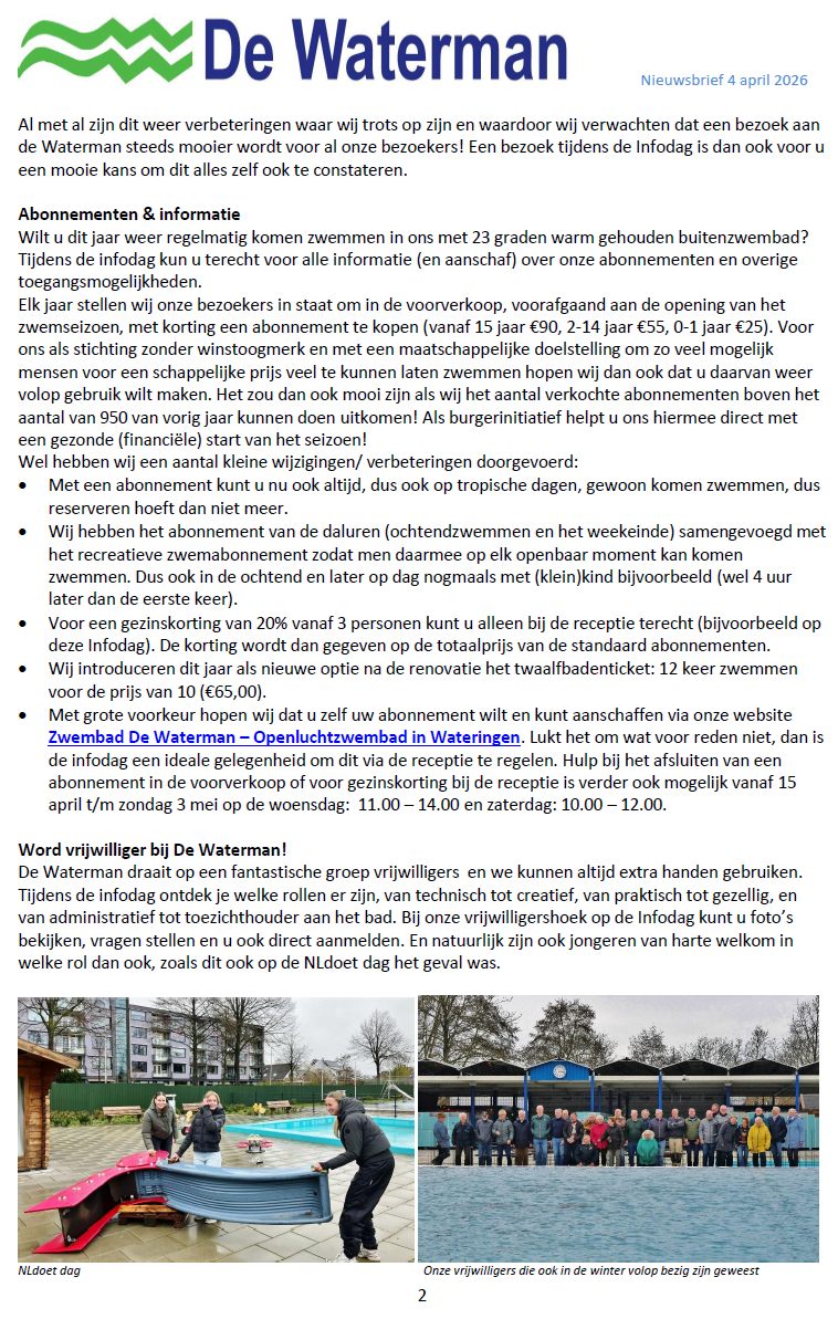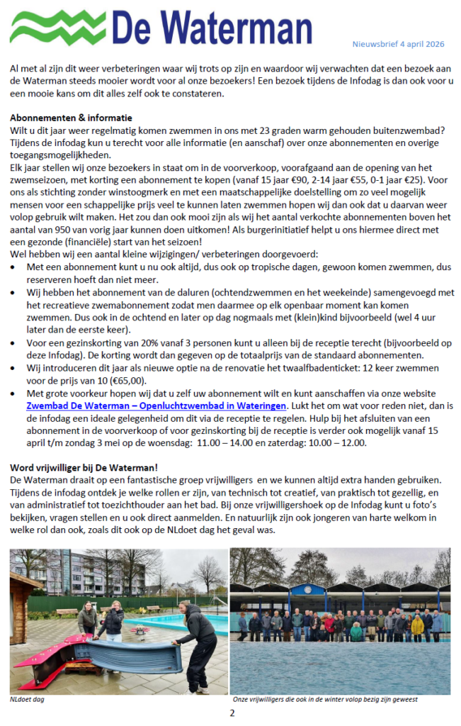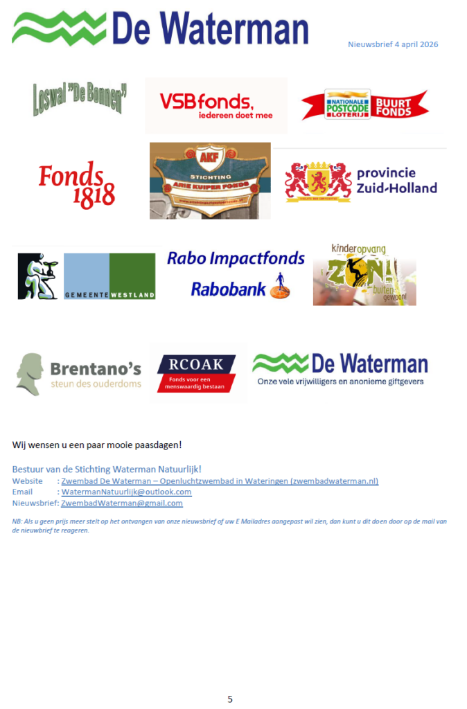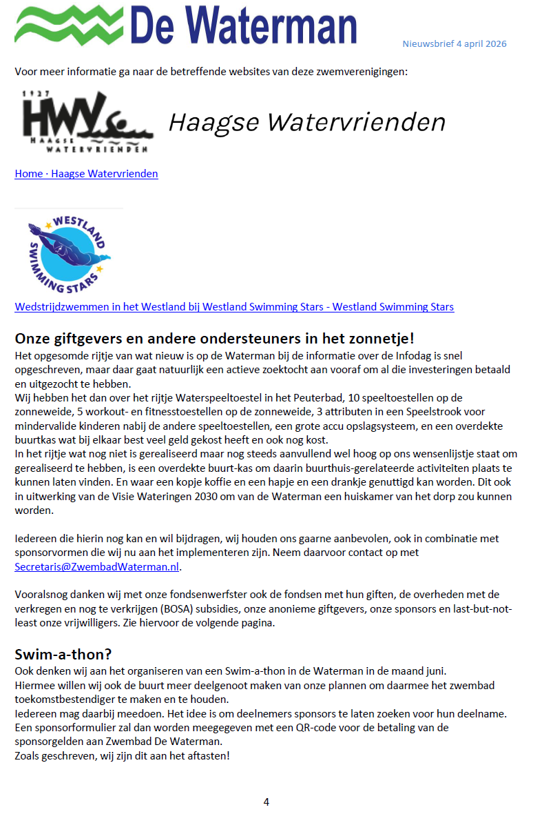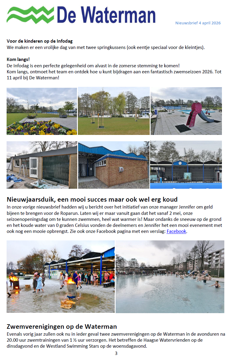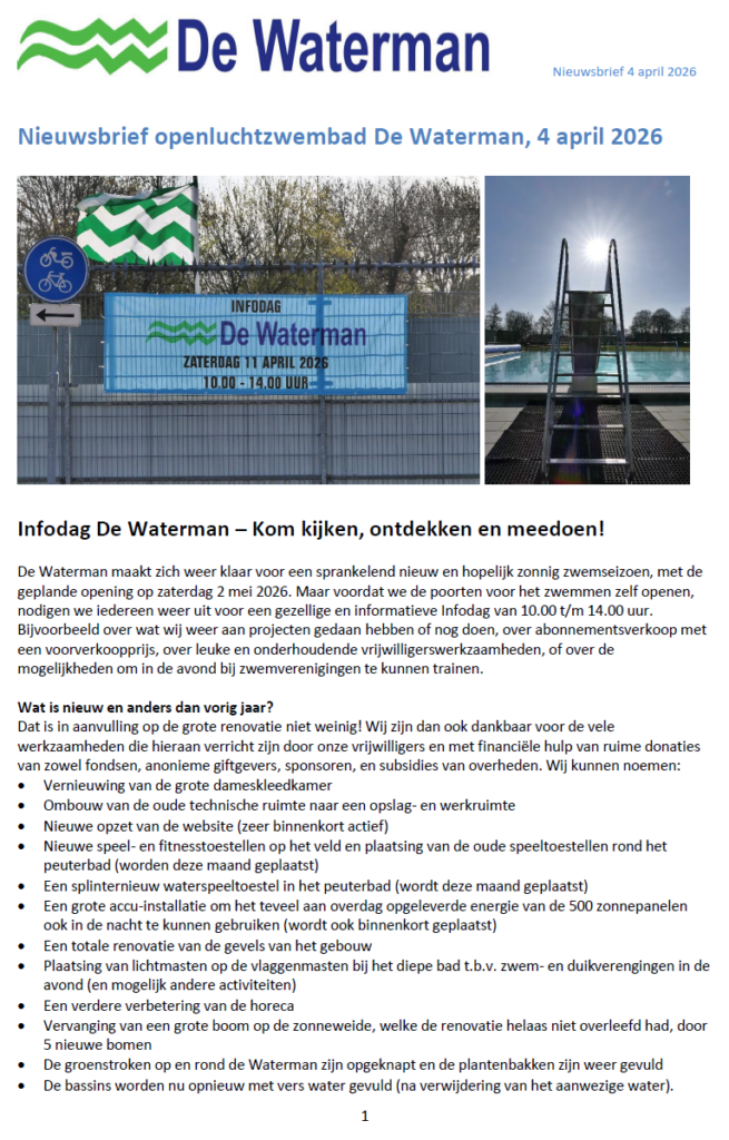 Wij zijn dan ook echt blij dat De Waterman als openluchtrecreatiezwembad in Wateringen blijft bestaan.